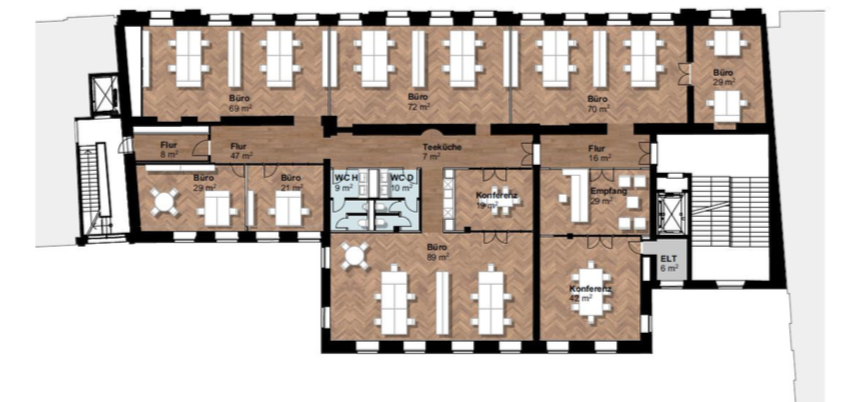 - Ground floor with approx. 622 sqm from 34 €/sqm