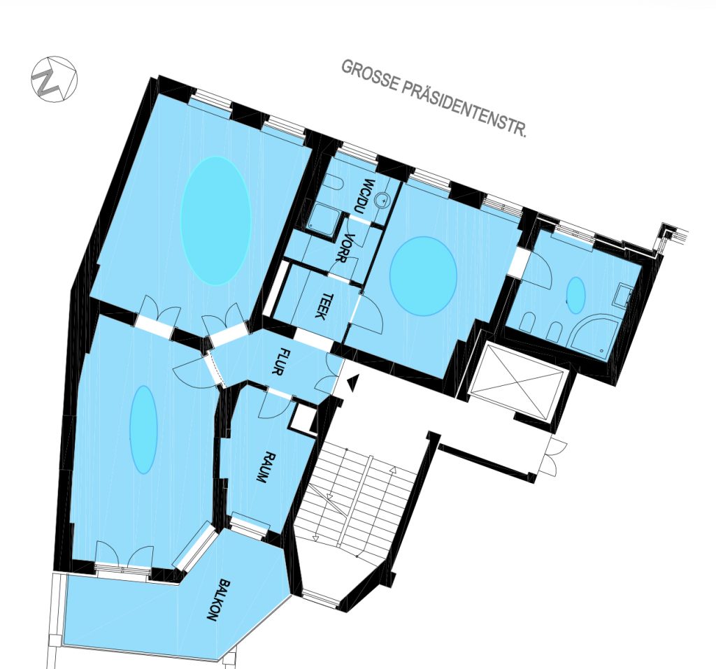 The modern and extensively renovated old building has a functional and well-equipped office space on the 3rd floor. The façade design and the historic staircase round off the high-quality appearance of the property.