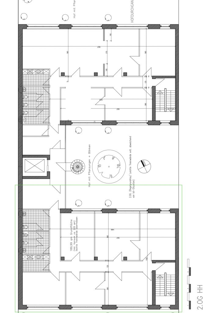 This building is a refurbished old building with 10 residential and 10 commercial units. The commercial tenants mainly use the rooms as offices or for training purposes and the commercial areas are located in the courtyard building on the ground floor and second floor.