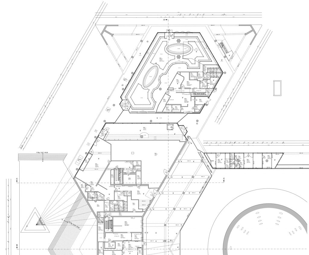 Die Flächen erstrecken sich über zwei Ebenen mit Erdgeschoss = 312 qm sowie 1.Obergeschoss 1.126 qm.