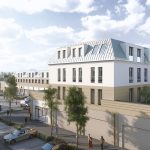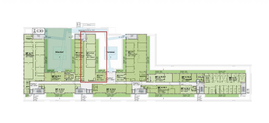 Büro -und Nahversorgungszentrum an der Trabrennbahn Mariendorf . Innovative Büros auf verschiedenen Etagen mit Anbindung an Aussenflächen.