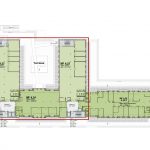 Office and local supply center at the Mariendorf harness racing track. Innovative offices on different floors with connection to outdoor areas.