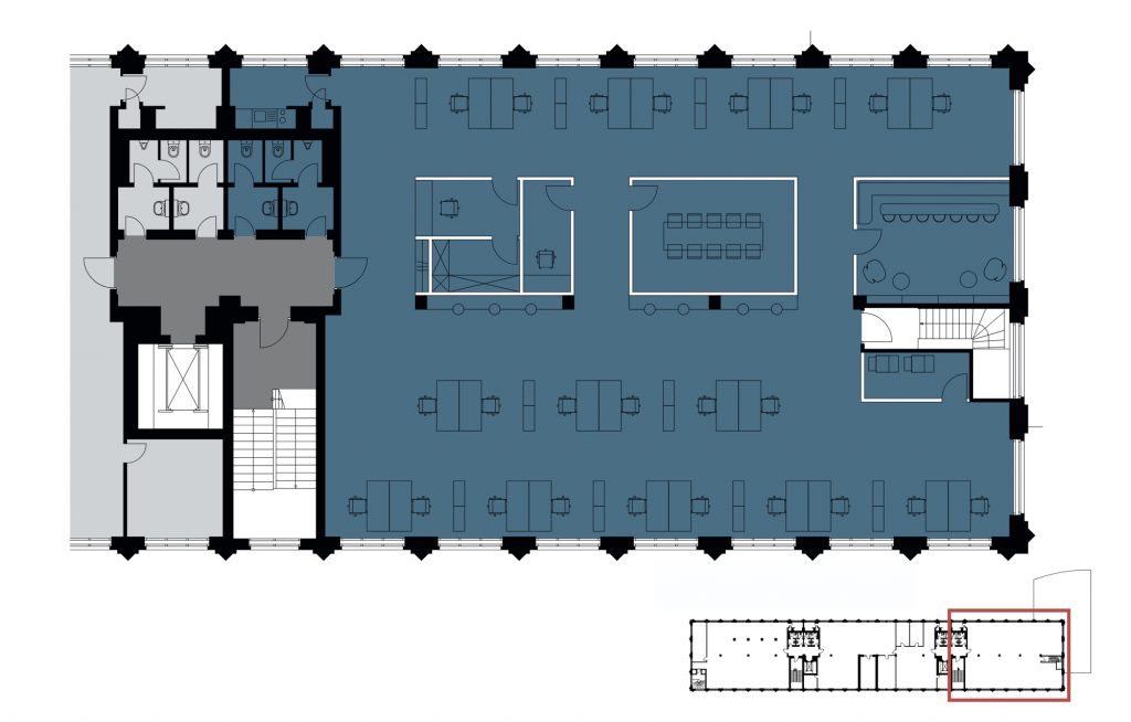 Es handelt sich um eine hochwertige, modernisierte Gewerbeimmobilie im Industriestil aus dem Jahr 1926. Das Objekt bietet Loft-Büroflächen mit außergewöhnlich hohen Decken (bis zu 4,42 m), viel Tageslicht durch große Sprossenfenster und flexible Grundrisse mit hochwertigen Glastrennwänden. Die Flächen verfügen über Echtholzparkett, moderne Teeküchen und eine vorinstallierte EDV-Verkabelung. Akustikpaneele an den Decken sorgen für eine optimierte Arbeitsatmosphäre.