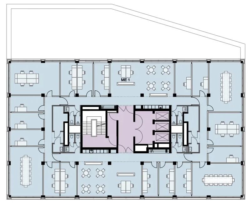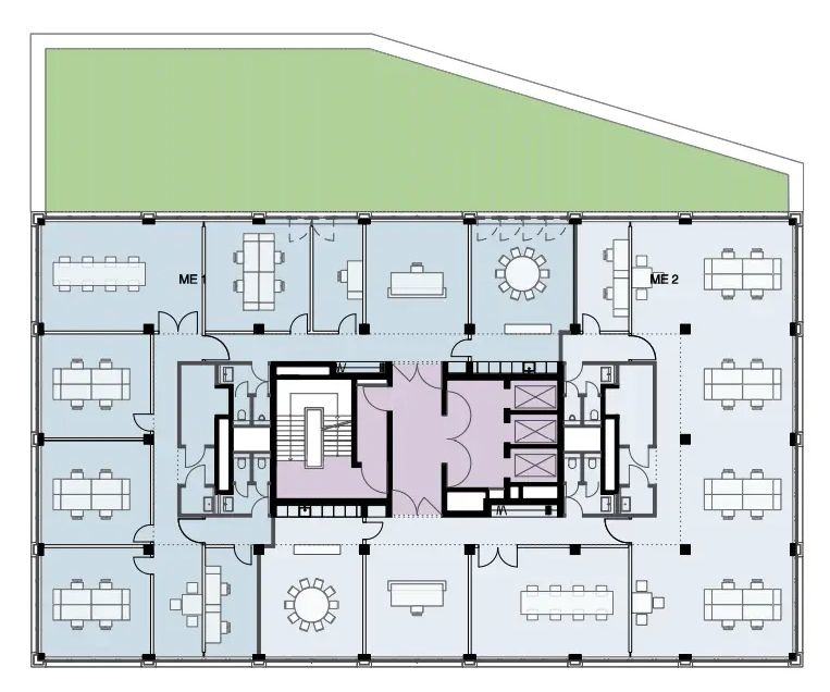 - 11th floor with approx. 575 sqm, divisible from 280 sqm with terrace for €26.50/sqm