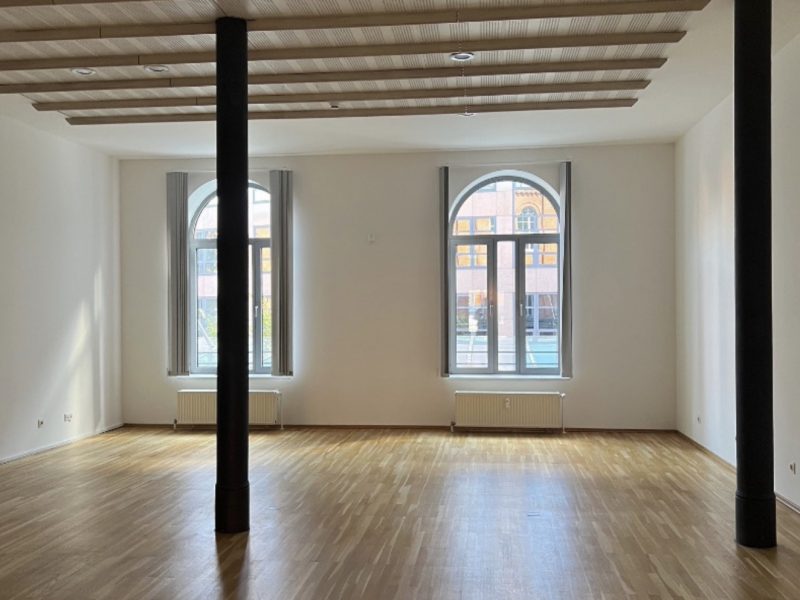 Es handelt sich um eine Fläche mit sehr hohen Decken und Loft ähnlicher Struktur. Bei den Bildern handelt es sich um Beispielbilder einer anderen Fläche innerhalb des Objekts