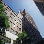The "Kollhoff Tower" is located at the northern tip of the site. The building was named after the Berlin architect Hans Kollhoff, who designed the prestigious building. Together with the Helmut Jahn tower opposite, this building forms part of a gateway to Neue Potsdamer Strasse.