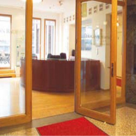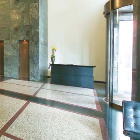 Clinker bricks were used for the façade and gray-green granite for the base. The lobbies are clad in marble and the floors are made of granite. With a height of around 100 meters and the expressive, high-quality architecture, the building attracts a great deal of attention from onlookers.