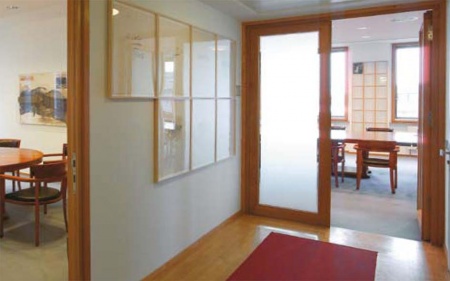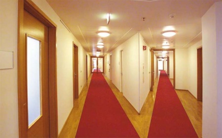 The upper floors are intended for office use; the first floor houses retail outlets as well as restaurants and cafés. There is a glass-roofed atrium between the wings of the building. The well thought-out functionality and the high-quality, variable equipment of the offices with state-of-the-art technology ensure excellent usability of the space. The efficient but discreet security measures also set standards. Each user determines how the offices are divided up. The floor plans are flexible and can be adapted in size and shape to the changing and evolving needs of the future tenant. Environmentally friendly and healthy building materials were used in the construction of the quarter. The office buildings have a sophisticated ventilation and façade system that works with the natural light, air and temperature conditions. The use of this building technology saves around 50 % primary energy. The Mitte combined heat and power plant, which supplies the district,