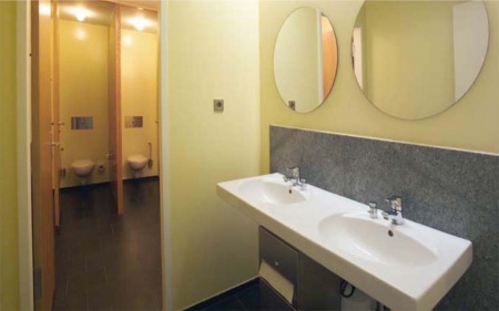 arbeitet mit moderner Kraft-Wärme-Kopplung, die den Kohlendioxidausstoß gegenüber einer herkömmlichen Versorgung um 70 % verringert. Zudem wird ein Teil der Wasserversorgung durch das auf den Dachflächen gesammelte Regenwasser gewährleistet.