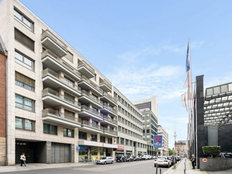 The property is located in the government district, opposite the Maritim Hotel. Important government institutions, ministries and associations are located in the neighborhood. The Friedrichstraße train station is within walking distance.