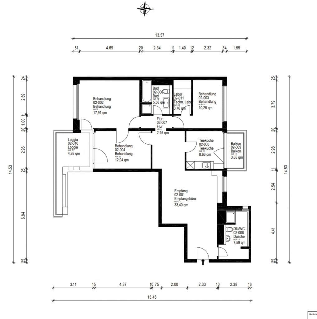 Das Wohn- und Geschäftsgebäude erstreckt sich über 7 Etagen und einem Staffelgeschoss. Die zu vermietende Fläche befindet sich im 2.Obergeschoss. Die Flächen sind für eine Praxis sehr gut geeignet.