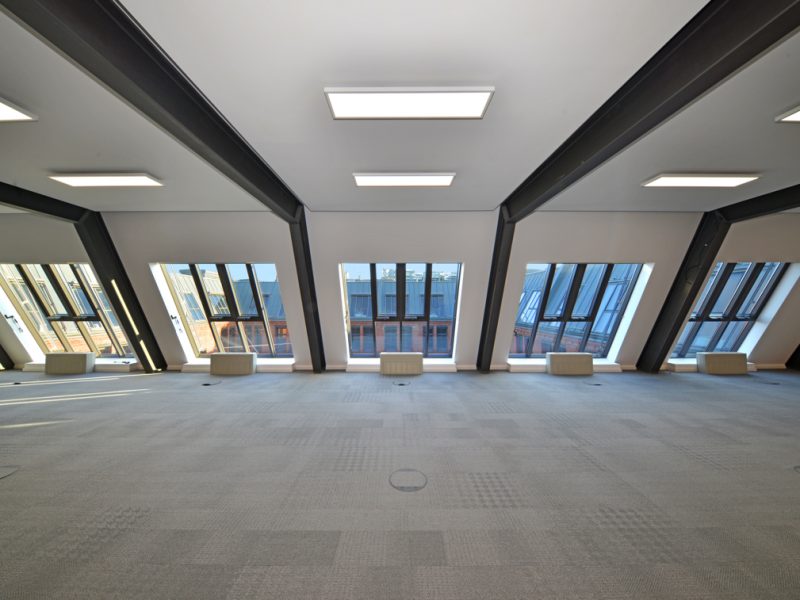 - 4th floor with 3420 sqm, divisible from 473 sqm, short-term from 29 €/sqm