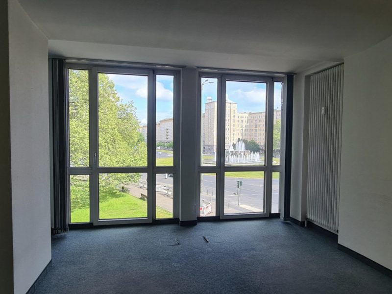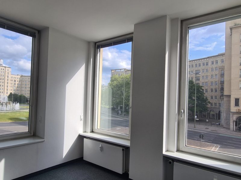 Das sog. "Haus Berlin" wurde im Jahr 1954 nach Plänen des renommierten Architekten Herrmann Henselmann erbaut und befindet sich vis-à-vis zum historischen Strausberger Platz.