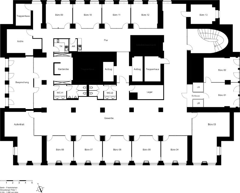 Die zentrale Lage bietet eine hervorragende Anbindung für Ihre Mitarbeiter und Kunden. Die Gewerbefläche erstreckt sich über das 2. Obergeschoss und ist bequem über Aufzüge sowie zwei Treppenhäuser erreichbar.