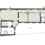 Im vorderen Bereich liegen zur Straße hin zwei Salons mit atemberaubenden bauzeitlichen Stuckelementen. Diese wurden mühevoll restauriert und zeigen nun wieder die Details aus ihrer gründerzeitlichen Entstehung.