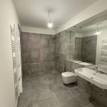 - - gefliestes Bad mit großem Spiegel, wandhängendes WC