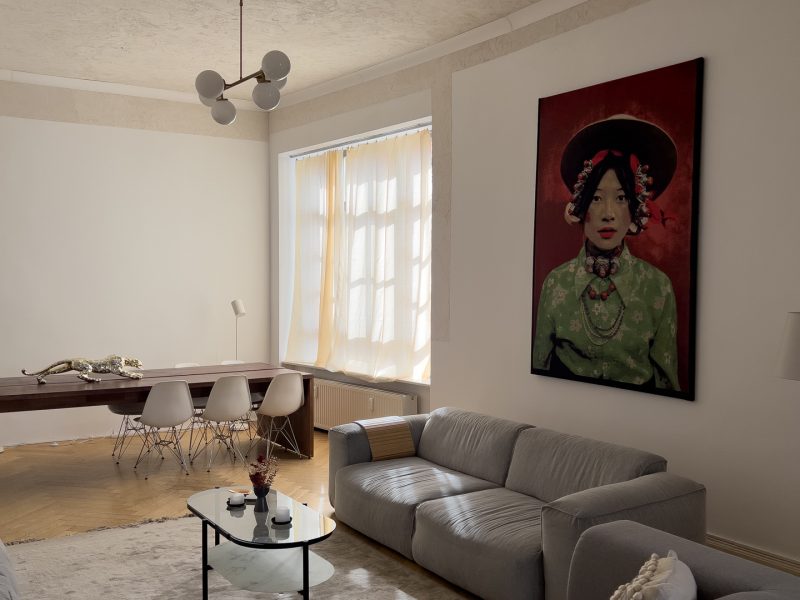 The immediate surroundings are characterized by lovingly renovated old buildings with historical style elements and modern, futuristic-looking new buildings, which blend harmoniously and impressively into the existing buildings. In Berlin-Mitte you can enjoy the flair of a metropolis with its extensive cultural and gastronomic offerings, as well as many boutiques and trendy stores that invite you to linger and enjoy. The Rosenthaler Platz subway station is in the immediate vicinity. There are also several streetcar and bus lines in the immediate vicinity.